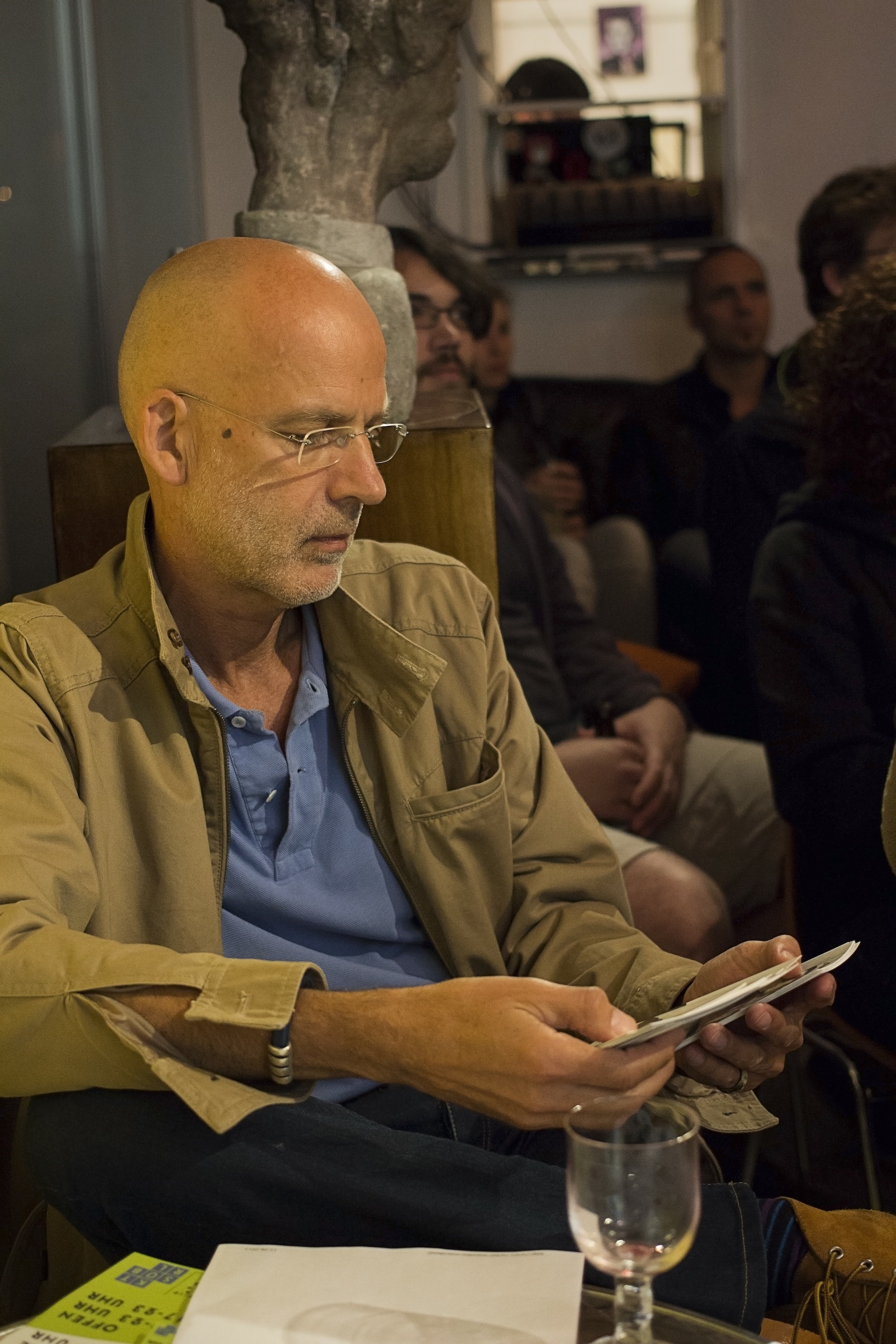 hat eine sehr interessante Serie zum Thema Mensch und Technik gemacht. Sie hat Menschen mit ihren elektronischen Geräten porträtiert. „We seek to fill our lives with chatter and stimulation to live the ‘ultimate’ life (and we have the pictures to prove it) but we no longer make time for silence, to allow for the unexpected.“ Ein wunderbarer Grund, mit ihren Fotografien der derzeit im Forum Phoinix präsentierten Ausstellung Open Faces ein Blitzlicht zu verpassen, um neue sübtextüelle Hintergründe im Rahmen der Ausstellung zu finden. Wir erlauben uns (mit ausdrücklicher Genehmigung der Künstlerin), ihre Fotografien per Lichtstrahl zu projezieren und damit Open Faces an diesem einen Abend mit einem weiteren Blickwinkel zu bereichern.