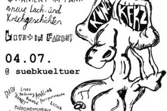 SÜBKÜLTÜR AM DIENSTAG, 4.07. 2017 um 20:00 Uhr Liebe Gemeinde der Kunzt, der Liebe und des Dosenbieres, lasset uns im sübkültürellen Rahmen zusammen kommen (höhö) und endlich wieder eine elephantöse […]